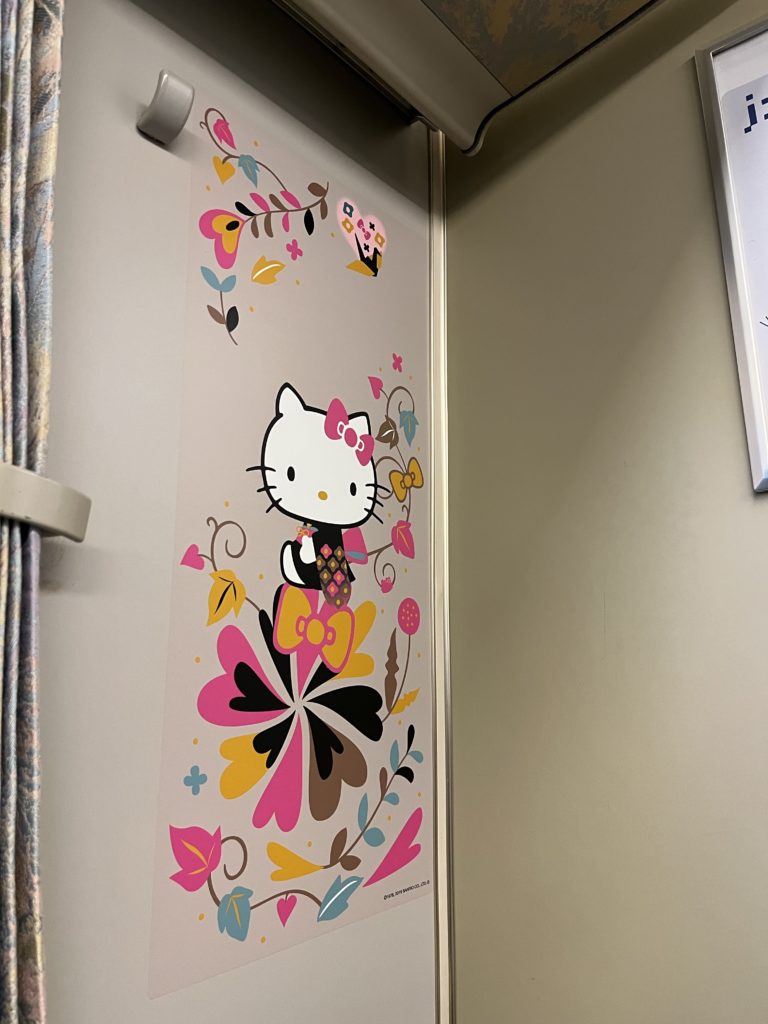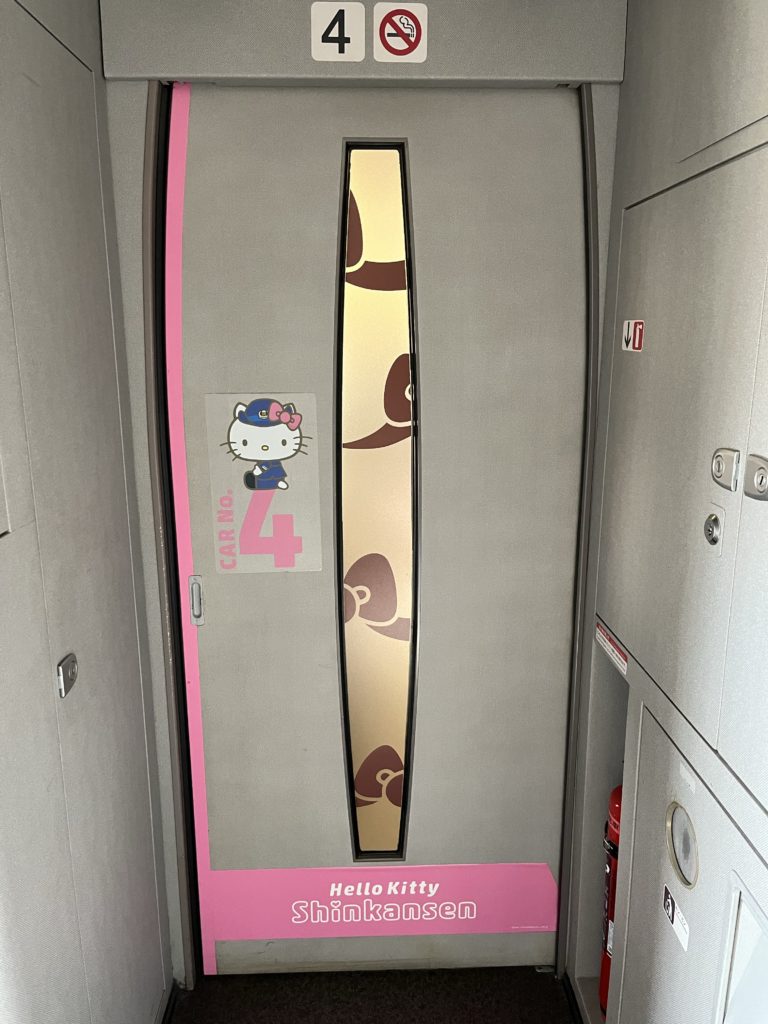Wie sind auf dem Weg nach Himeji mit einem Hello Kitty Shinkansen gefahren – eine verrückte Sache. 🙂
