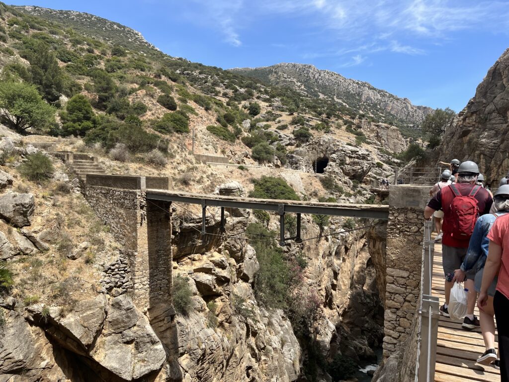 Danach wurde auch noch eine Eisenbahnstrecke angelegt, um Kohle von Cordoba nach Malaga zu transportieren – der Eröffnung hat der damalige spanische König beigewohnt, seitdem heißt der Weg Caminito del Rey – Königsweg/Königspfad.