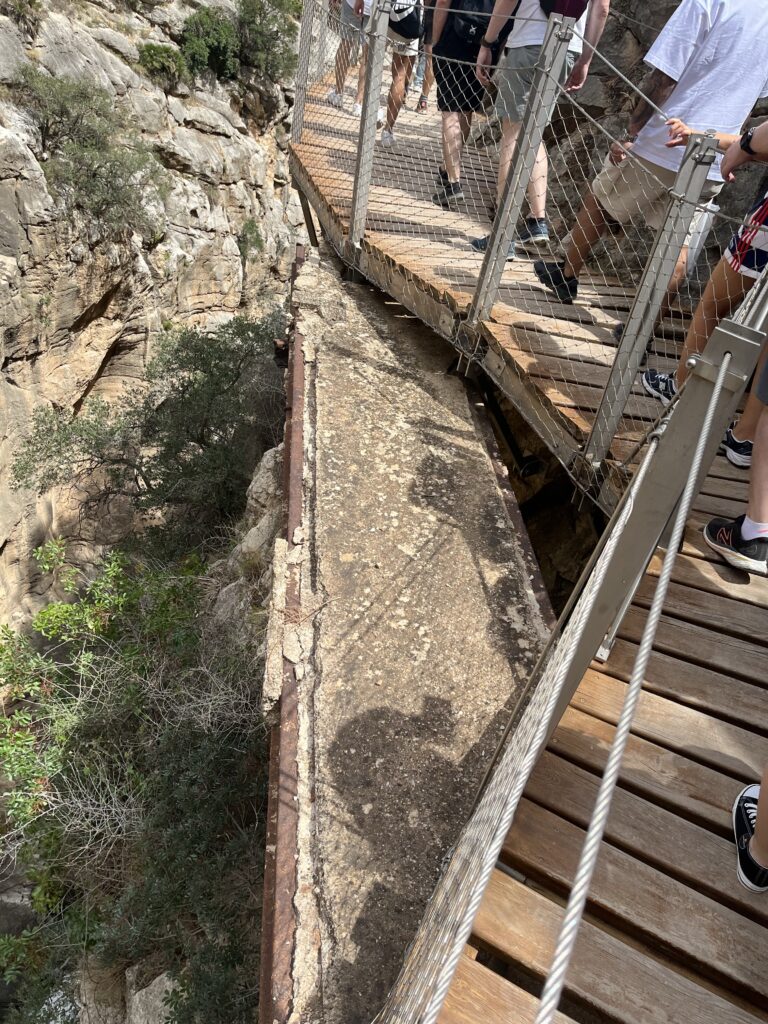 Die Wanderung war sehr spannend und unser Guide hat uns ziemlich viel erzählt: der Weg wurde ursprüngliche angelegt, damit am Beginn der Schlucht ein Wasserkraftwerk gebaut werden konnte. Der Bau des “alten Weges” hat ca. 8 Jahre gedauert. Es haben dann Mitarbeiter des Kraftwerks in der Schlucht gewohnt und deren Familien/Kinder mussten nach El Chorro (das Dorf am Südausgang der Schlucht) zur Schule gehen – natürlich über den Klettersteig.
