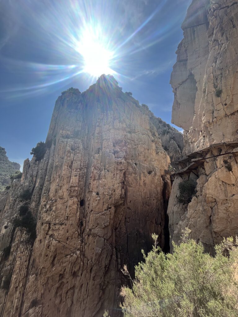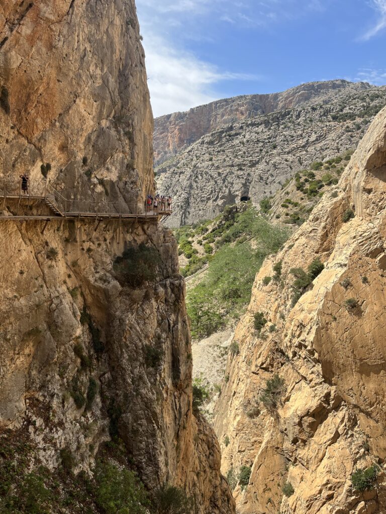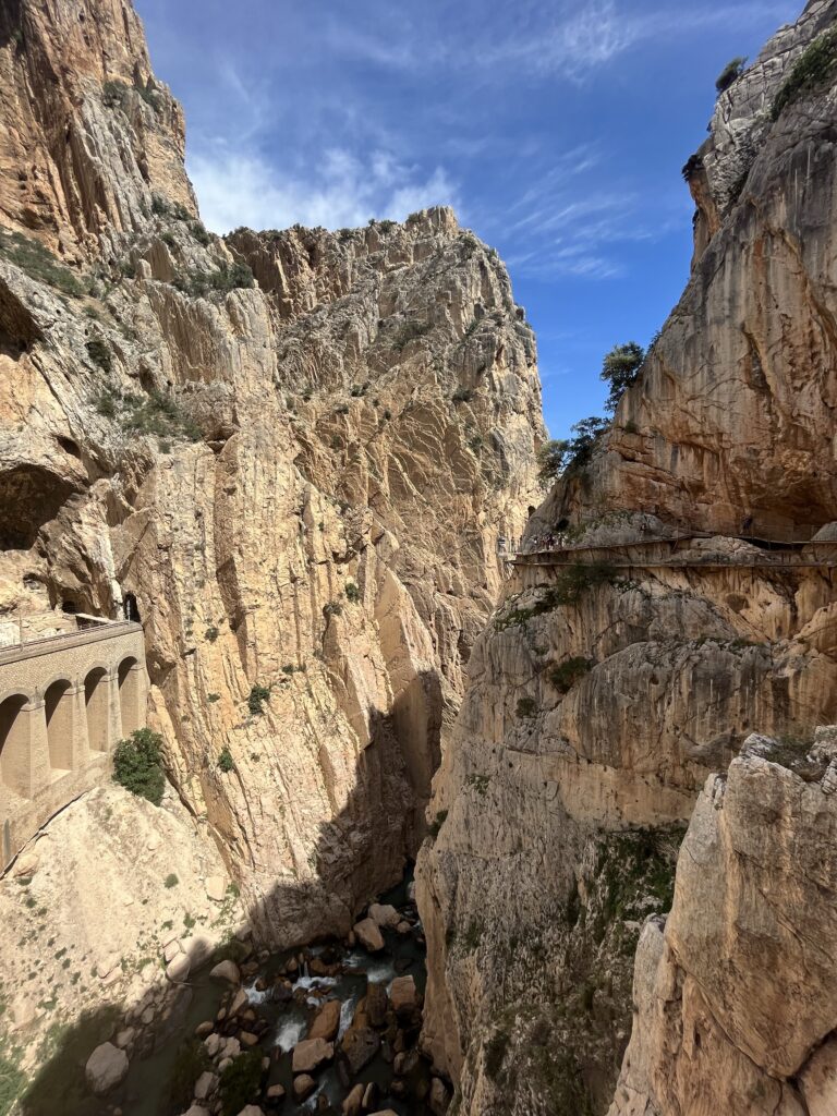 Unsere aktuelle Unterkunft war in der Nähe von Malaga, deswegen haben wir gestern einen Ausflug nach Caminito del Rey (übersetzt ‚Königspfad‘) unternommen. Dabei handelt es sich um eine gigantische Schlucht (3km lang – der gesamte Wanderpfad ist 7,7km lang) mit Wänden, die bis zu 300m tief und dabei teilweise nur 10m voneinander entfernt sind. Die Schlucht kann nur mit Ticket zu einem gewissen Zeitslot von Nord nach Süd durchwandert werden. Ganz billig ist der Spaß nicht aber es war sehr sehenswert.