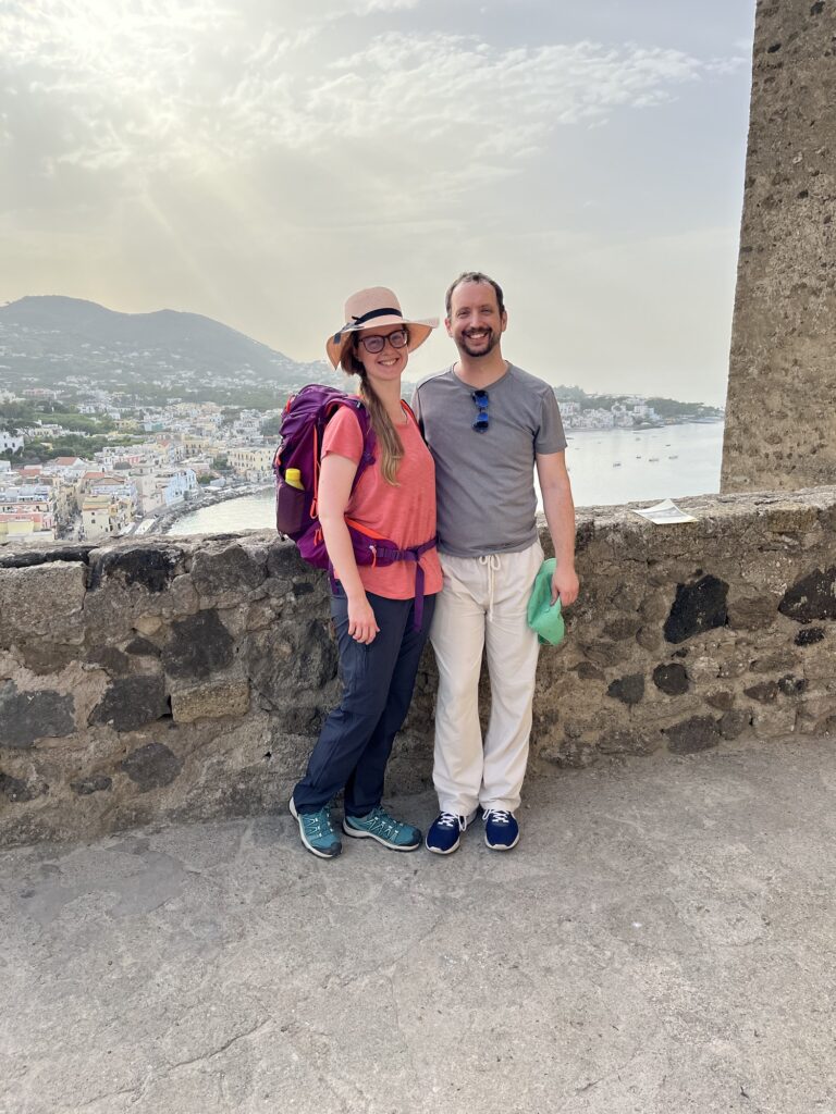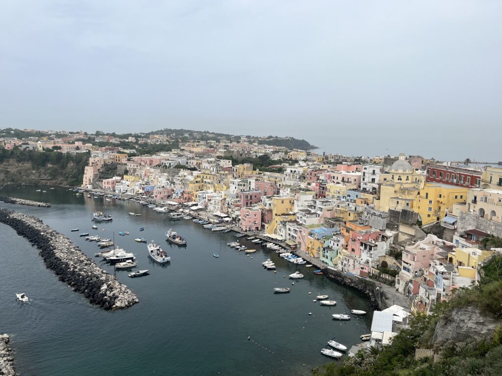 Die ersten zwei Nächte unseres Urlaubs haben wir auf der Insel Ischia verbracht. Am Weg nach Ischia sind wir in Procida von der Fähre gehüpft und haben uns diese kleinere Nachbarinsel angesehen. In Procida gibt es einen sehr schönen bunten Fischerhafen (Marina di Corricella) und ein paar schöne Ausblicke. Wir haben auch bei einem kleinen Bistro unsere ersten lokalen kulinarischen Erfahrungen gemacht: frittierte Pasta und Zitronensalat waren sehr lecker.