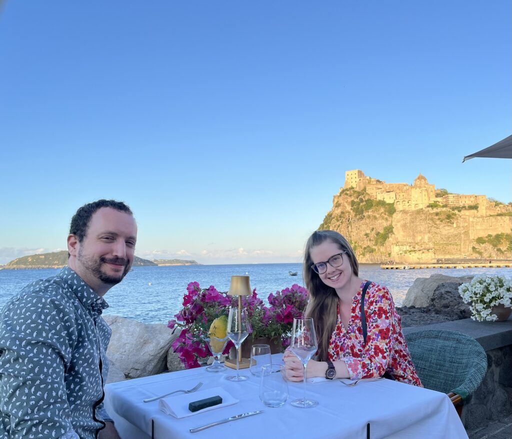 Den Abschluss in Ischia hat ein tolles Abendessen mit Blick auf das Castello gebildet.