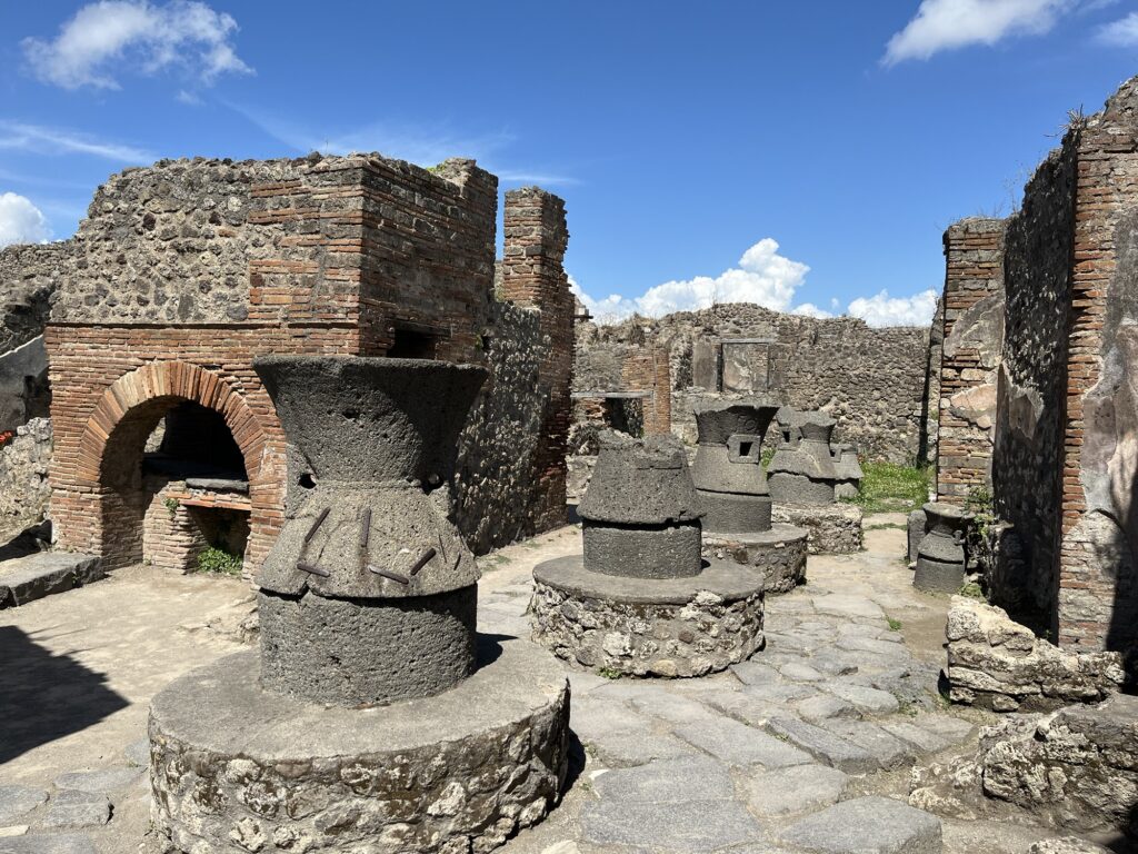 Am ersten Nachmittag haben wir uns dann die Ruinen von Pompei angesehen. Es ist ein Wahnsinn, wie viel davon noch erhalten ist und was damit alles über das damalige Leben rausgefunden wurde. Es gab Fast-Food-Suppen-Stände, Leute mit genügend Geld hatten schon fließendes Wasser im Haus und damals gab es auch schon schriftliche Bewertungen für Dienstleistungen (in diesem Fall zu Prostituierten). Spannend sind auch die “Zebrastreifen” mit denen Passanten von einer Seite der Straße zur anderen wechseln konnten ohne auf die verschmutzten Straßen zu steigen.
