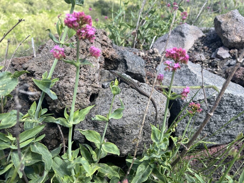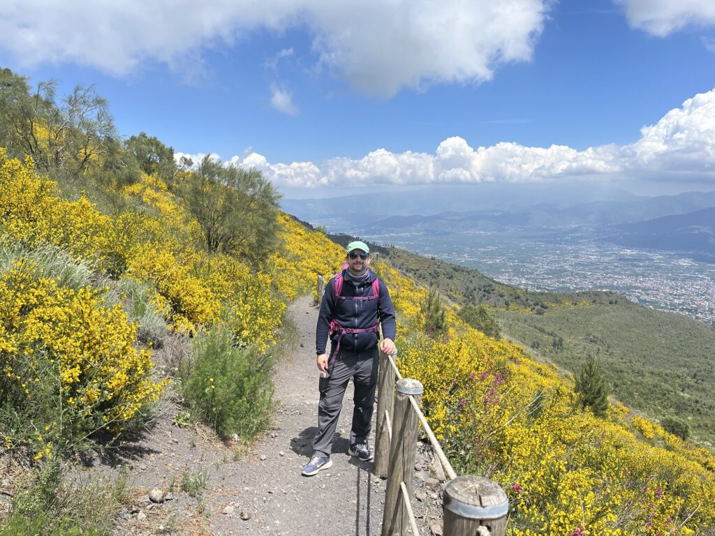 Wir haben unsere Wanderung verlängert, haben den Vesuv einmal umrundet und sind so in der wunderschönen Natur ohne andere Menschen spaziert. Die Hänge des Vesuv sind zu dieser Zeit (Mai/Juni) voller gelber und rosa Blumen und man sieht überall Eidechsen umher huschen. Das war einfach super toll.