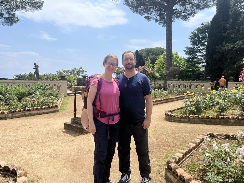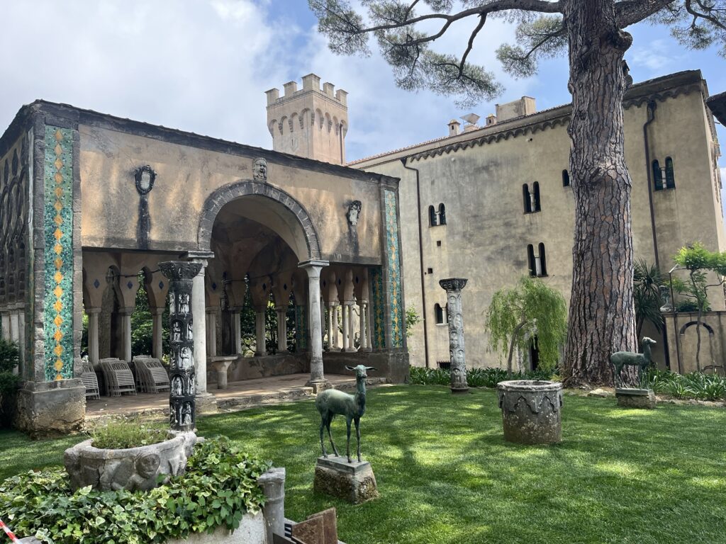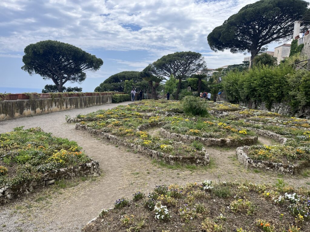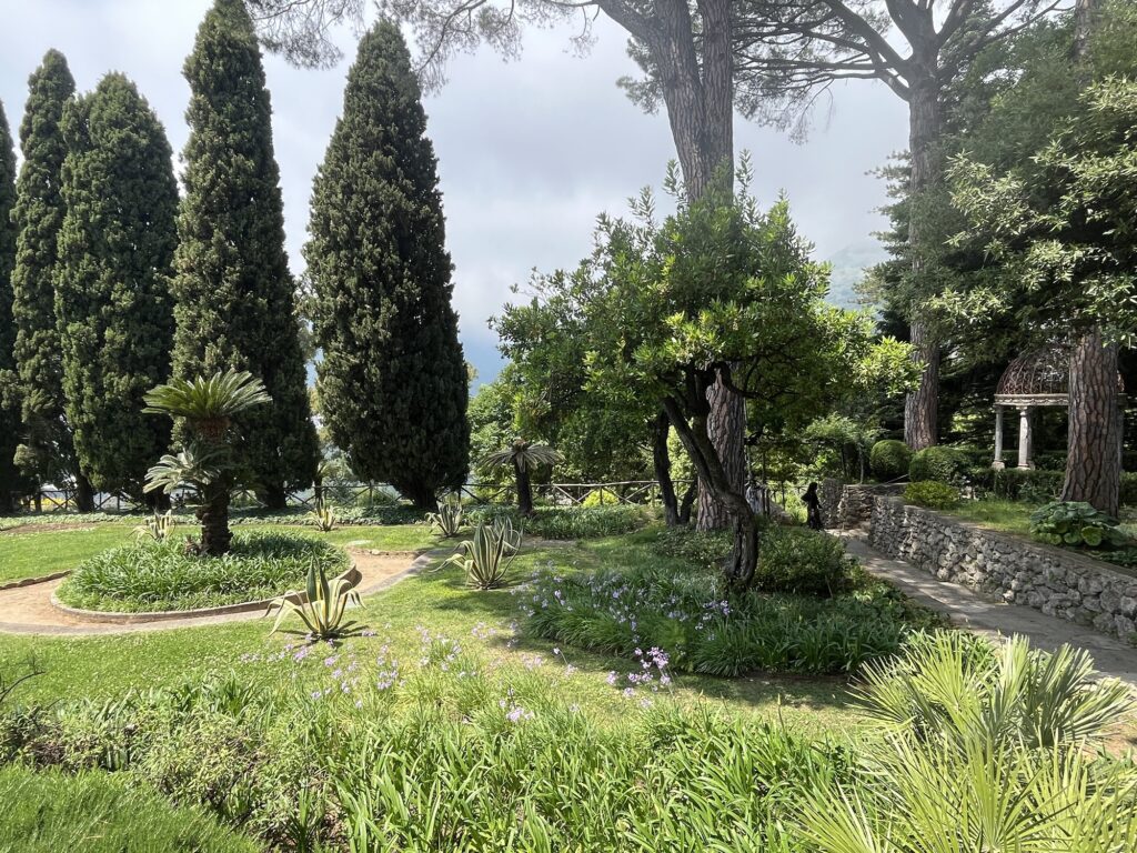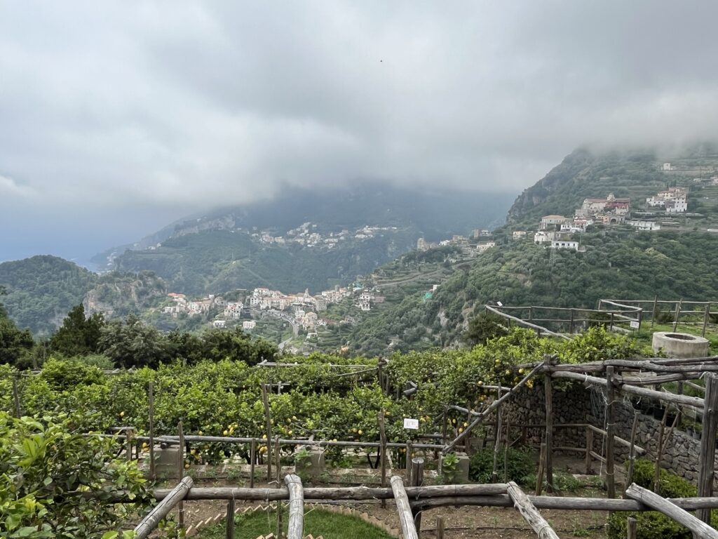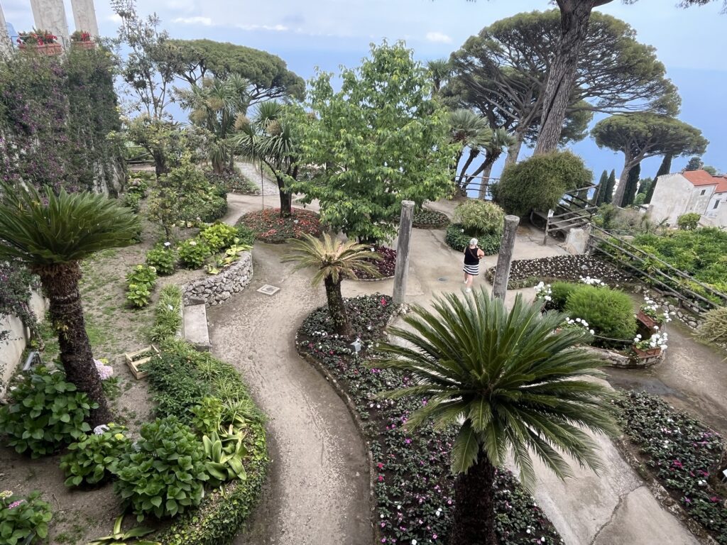Aber zurück zu Ravello. An diesem Tag war es ziemlich bewölkt, aber es gibt dort zwei sehr schöne Villen bzw. deren Gärten zu besichtigen. Von der Villa Cimbrone hat man einen wunderbaren Blick auf die Amalfiküste. Im Garten blühen Rosen, der Rasen ist gepflegt und eine Hochzeit war auch gerade in Planung (wir wollen gar nicht wissen was das dort kostet).