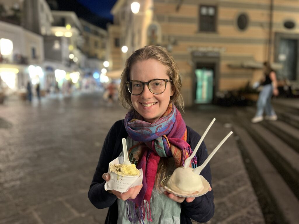 Nach Capri hat es uns nach Amalfi verschlagen. Hier ist man zentral an der Amalfiküste und kommt überall gut hin (Amalfi liegt relativ mittig zwischen Salerno und Sorrent), entsprechend sind auch die Preise. Unter Tags ist Amalfi voller Touristen, die das Vorankommen etwas schwierig gestalten. Amalfi selbst ist eine eher kleine, aber sehr schöne Stadt – auf der “Hauptstraße” reiht sich Geschäft an Geschäft. Der Dom und die Krypta in Amalfi sind sehr hübsch. Nebenbei gibt es einen Zuckerbäcker mit phänomenalem Eis (in Italien haben wir unser bestes Pistazien Eis gegessen).
