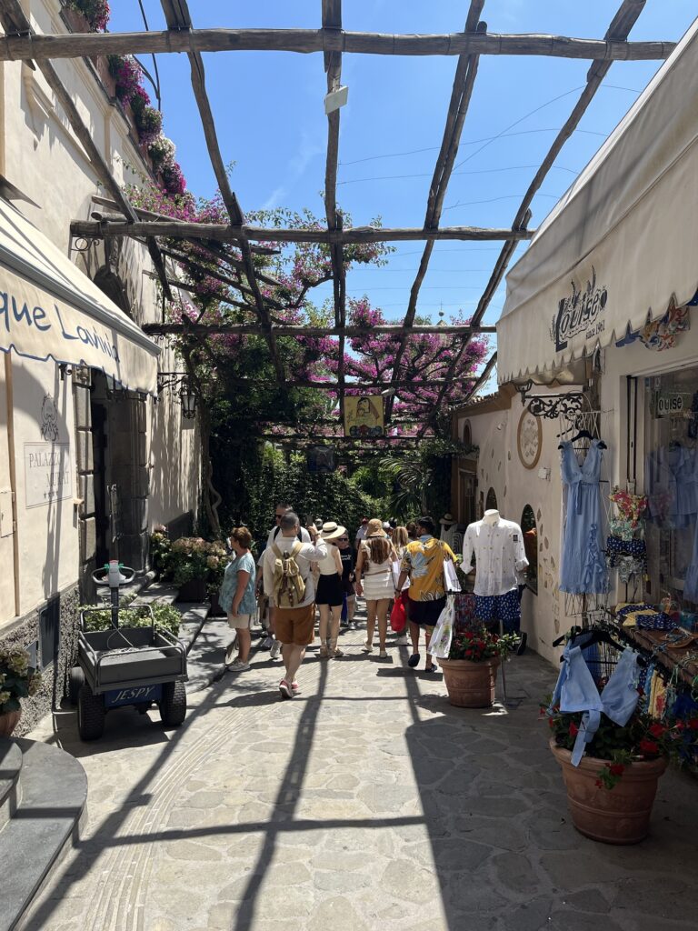 Positano ist in den Hang gebaut und besteht aus vielen Stufen 😀. Die Architektur, wie so eine Ortschaft in den Berg gebaut werden kann, ist schon sehr imposant. In Positano sind so wie in Amalfi sehr viele Touristen unterwegs, wir haben uns dann einfach in ein Cafe gesetzt und ein bisschen dem Treiben zugesehen. Wir haben dort einen sehr überteuerten (16€ pro Glas) Limoncello-Spritz getrunken, der leider nicht Mal gut geschmeckt hat. Dafür waren die Sessel dort bequem, was uns wiederum entgegen kam. 😅