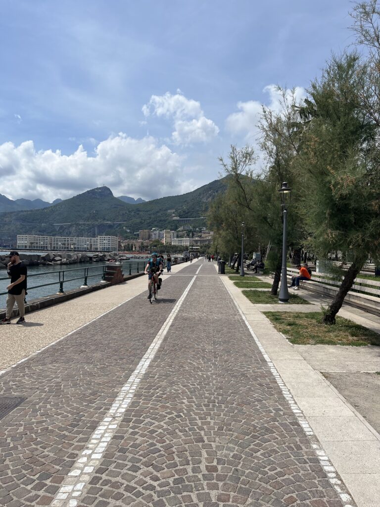 In Salerno sind wir gleich ein paar Stunden vor Ort geblieben. Salerno hat eine lange, sehr hübsche Strandpromenade, die wir für unsere Mittagspause genutzt haben. Ein längerer Abschnitt der Innenstadt wird gerade saniert, deswegen gibt die Fußgängerzone aktuell nicht so viel her. Weiter Richtung Altstadt bekommt man aber wieder starke Italien-Gefühle mit kleinen und verwinkelten Gassen.