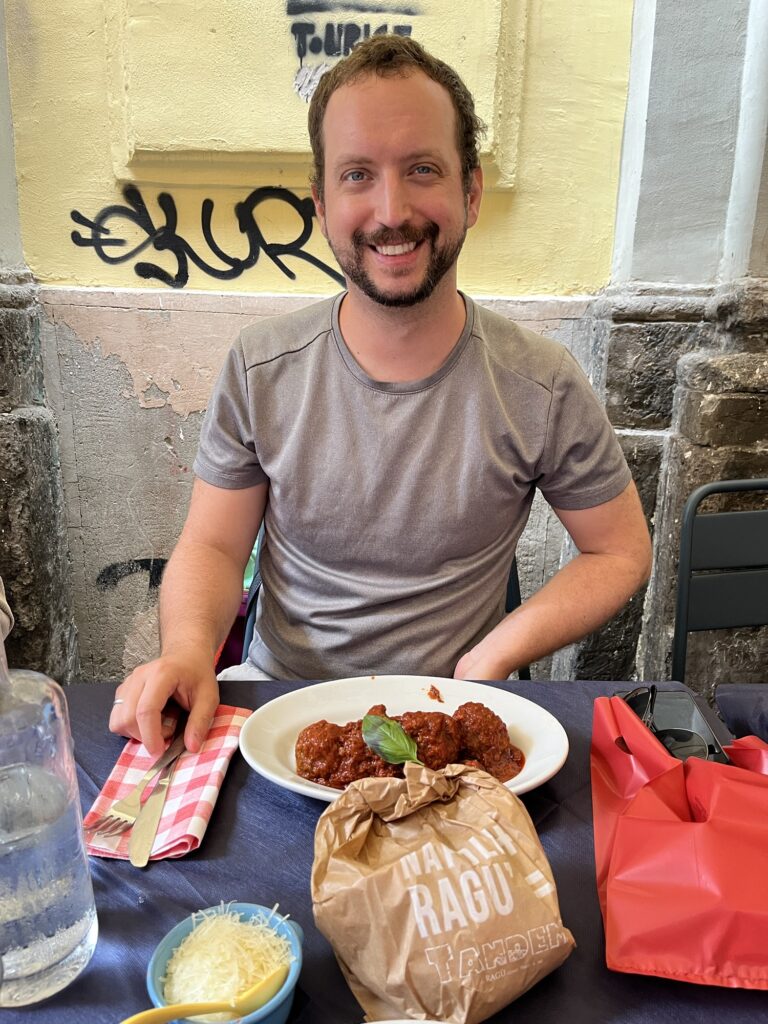 In Neapel haben wir auch unsere beste Pasta gegessen: selbstgemachte Fussili mit Neapolitan Ragú und einmal mit Genovese. Wir waren am ersten Abend im Restaurant ‘Tandem’ spontan Abendessen. Unser Kellner “Lucky” hat sich Zeit genommen und anhand von Beispielen die verschiedenen Nudelsorten erklärt. Wir sind dann am nächsten Tag zu Mittag gleich noch Mal hingegangen 🍝🤭.