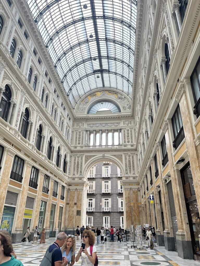 Unseren letzten Tag sind wir etwas entspannter angegangen. Wir sind mit der U-Bahn zum spanischen Viertel gefahren. In der U-Bahn Station Toledo hat schon ein kleines Kunstwerk auf uns gewartet. Es gibt in mehreren U-Bahn Stationen Mosaike oder Bilder, die etwas von der tristen Ubahn ablenken. Die Galleria Umberto I ist auch ein imposantes Gebäude, das Geschäfte, Cafés etc. beherbergt.