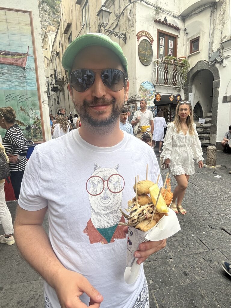 Ein paar Mal sind wir zum Pizza 🍕 Essen gekommen. Besonders gut hat es uns in der Pizzeria Donna Stella in Amalfi geschmeckt. Dort hat einfach alles gepasst, die Pizzasauce war super tomatig (das Wort existiert wahrscheinlich gar nicht 😅) und fruchtig, die Pizza selbst sehr lecker, es ging schnell, das Personal war motiviert und freundlich und man saß im Freien unter Zitronenbäumen 🍋. Vor allem die Recht einfache Variante mit Büffelmozzarella und Cocktailtomaten hat uns überzeugt.