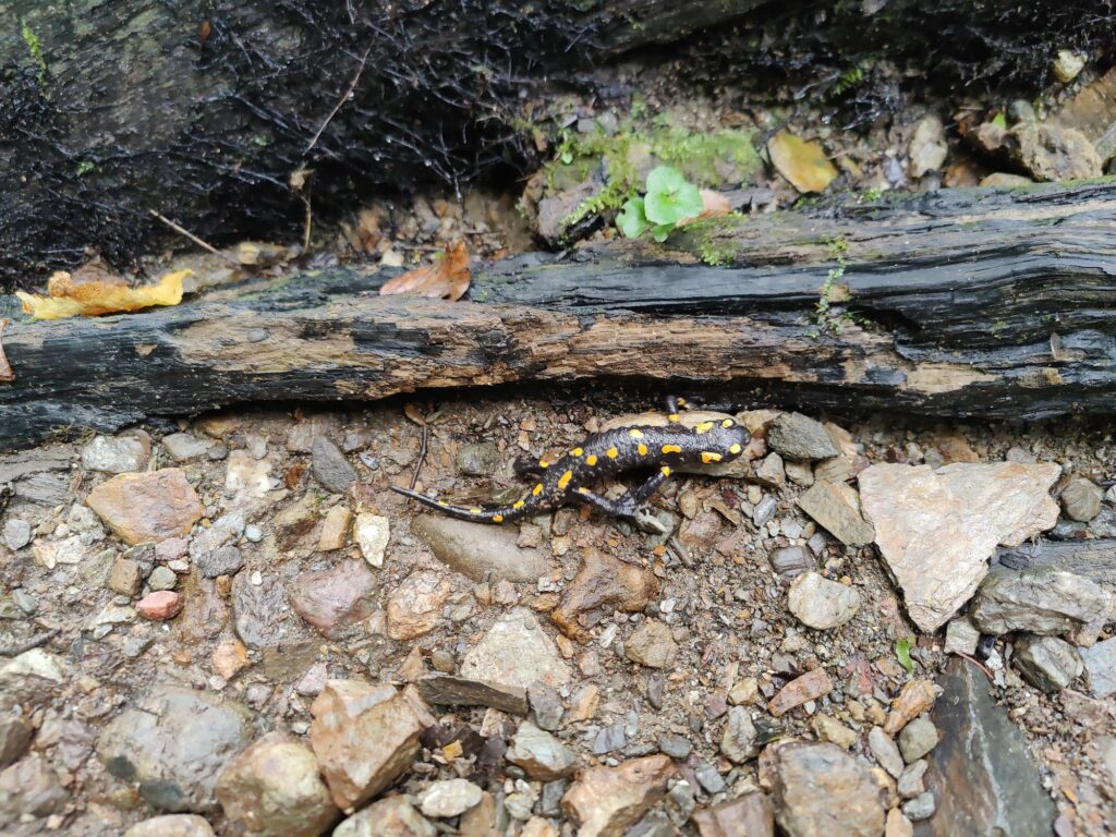 Auf jeden Fall war der Aufstieg durch die Klamm abenteuerlich, durch den Regen war es etwas rutschig und wir mussten zig Mal den Bach queren 😄. Es ging auch stetig bergauf, weswegen wir uns nach dem ersten Drittel auch überlegt haben, ob es nicht besser wäre umzudrehen … Aber wir haben durchgehalten und sind mit sehr schönen Naturwasserfällen und unzähligen Begegnungen mit Salamandern belohnt worden. Positiver Nebeneffekt ist, dass wir jetzt auch wissen dass unsere Wanderschuhe wirklich etwas Wasser aushalten 😅.