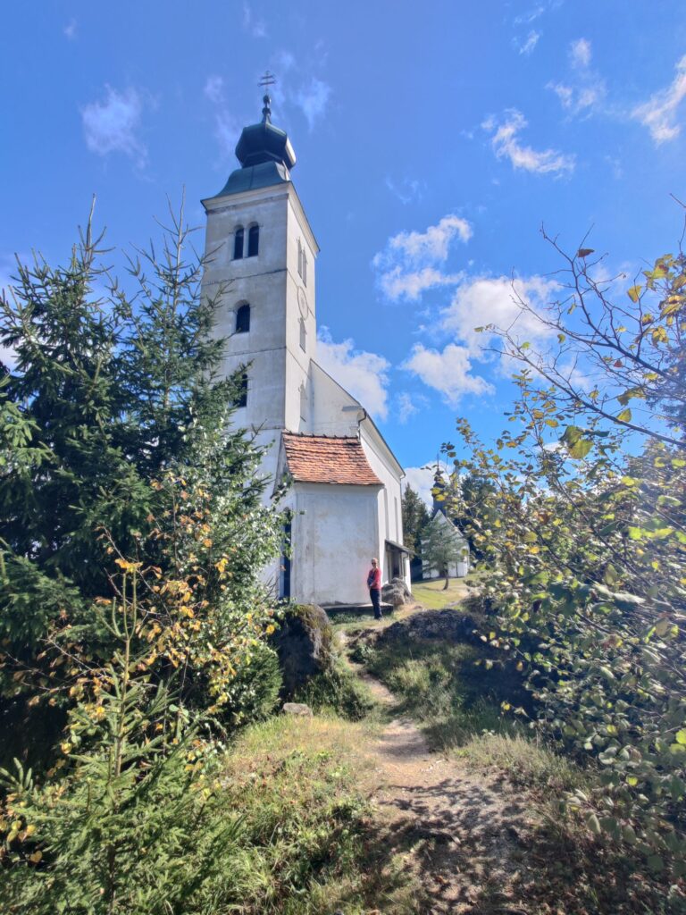 Nach der Klamm ging es über die Alm zum slowenischen Dorf “Heiliger Geist am Osterberg” und zur dortigen Kirche, die auf der Bergspitze steht. Aus Sicherheitsgründen haben wir extra unser Reisepässe mitgenommen (am Vortag haben wir vergessen sie einzupacken ^^). Aus dem Dorf gab es einen fantastischen Blick auf das Umland und tief hängende Wolken waren unter uns und haben dem ganzen einen mystischen Touch verliehen.