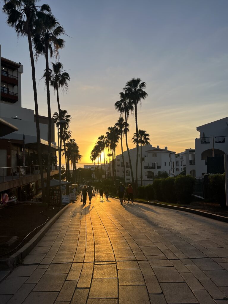 Wir sind am Abend auf der Strandpromenade spazieren gegangen und haben dabei den Sonnenuntergang genossen. Das war das Highlight des ersten Tages. 🤗☀️