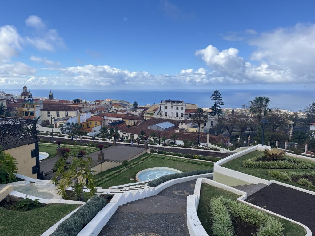 Unsere Weiterfahrt hat uns nach La Orotava gebracht, einer Ortschaft unweit von Porto de la Cruz. La Orotava ist an den Hügel gebaut, daher geht es dort etwas stärker rauf und runter. Uns hat die Ortschaft aber sehr gut gefallen, es gibt eine sehr hübsche Altstadt mit Kopfsteinpflaster, viele gut erhaltene Gebäude mit kolonialer Architektur und zwei richtig schöne Gärten, in denen man sich ausruhen und die Seele baumeln lassen kann. Einer davon ist ein botanischer Garten, in dem früher Pflanzen aus Übersee ans europäische Klima gewöhnt wurden.
