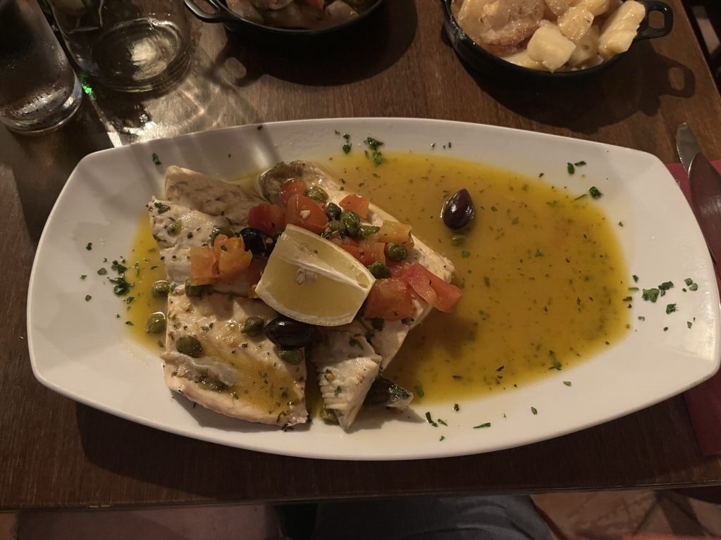 Zum Abendessen haben wir uns ein Restaurant (Il-Merill) mit maltesischer Küche ausgesucht. Leider war die Auswahl an Gerichten, die ohne Wein zubereitet werden, beschränkt 😅. Wir haben trotzdem etwas gefunden, was uns geschmeckt hat.